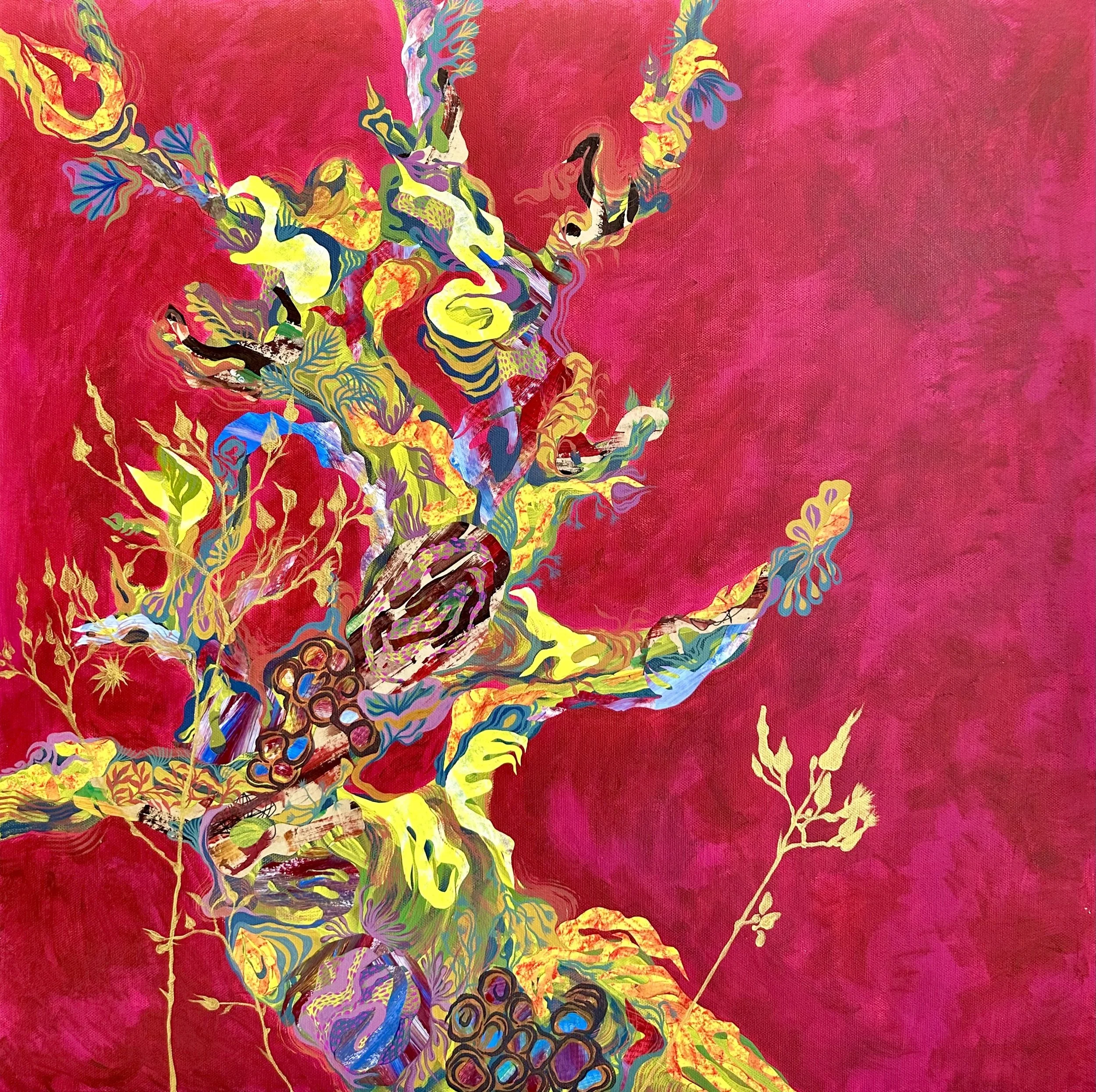 “Landscape of a disquiet mind” 2026 - Collage (hand-painted textures & patterns) & Acrylic paints on canvas - 80 x 80cm