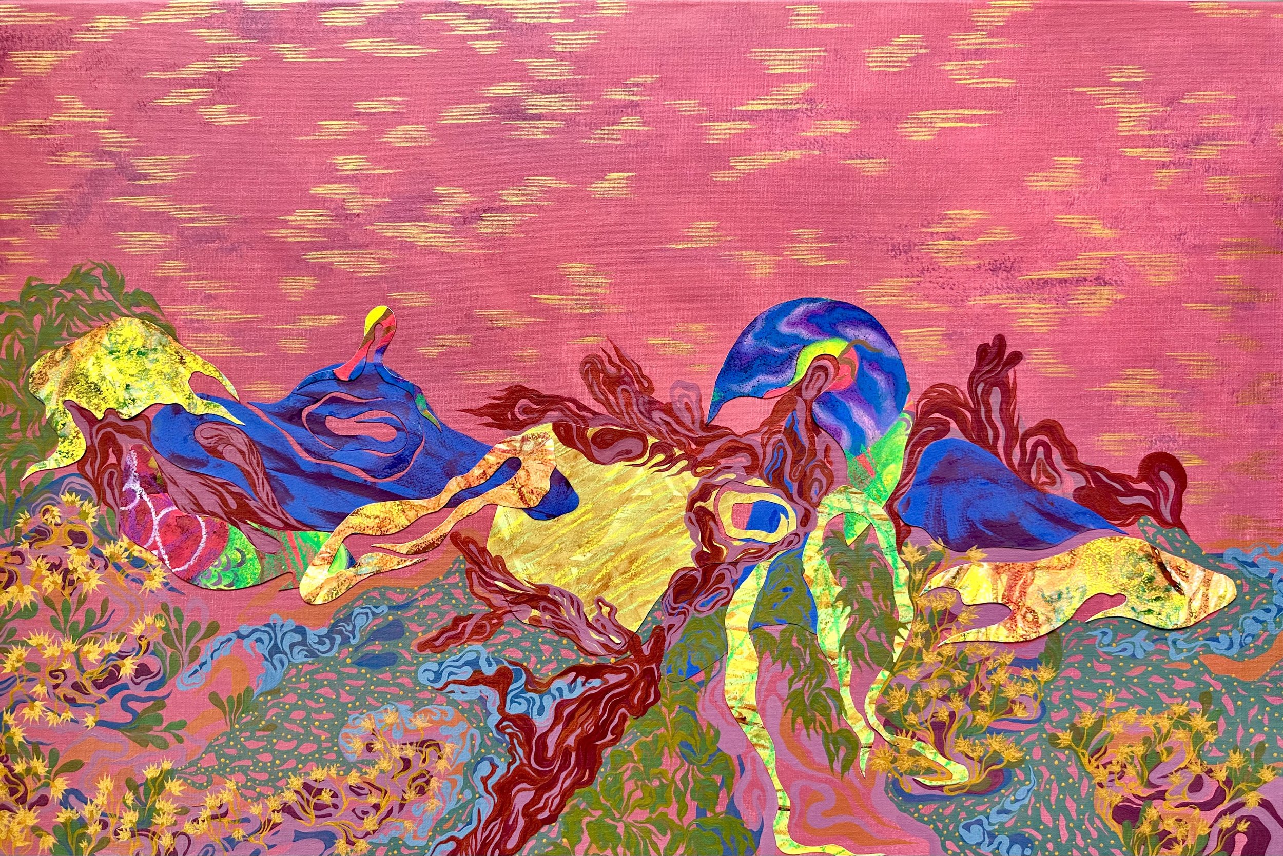 “Landscape of a disquiet mind” 2026 - Collage (hand-painted textures & patterns) & Acrylic paints on canvas - 90 x 60cm